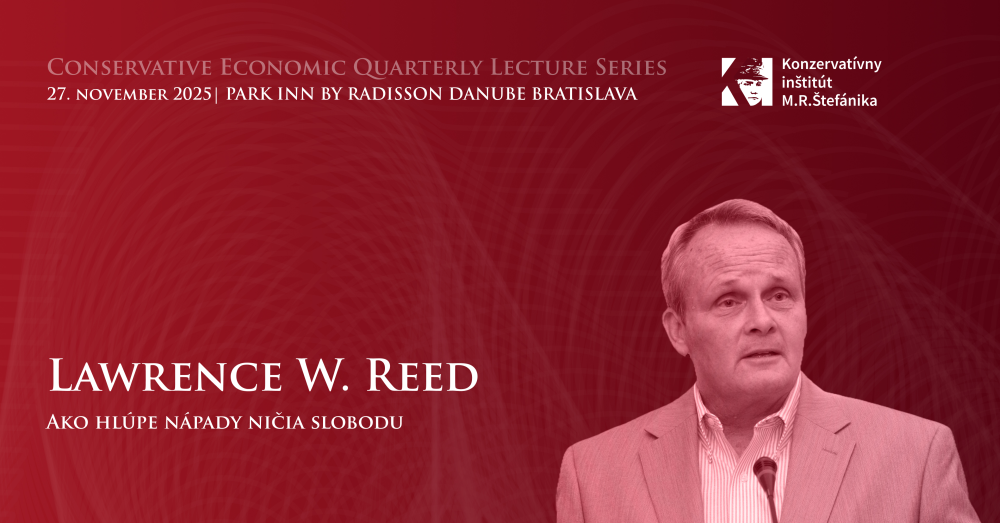 Konzervatívny inštitút M. R. Štefánika organizuje ďalšiu z cyklu prednášok CEQLS, tentoraz bude naším hosťom americký ekonóm a historik Lawrence W. Reed.
