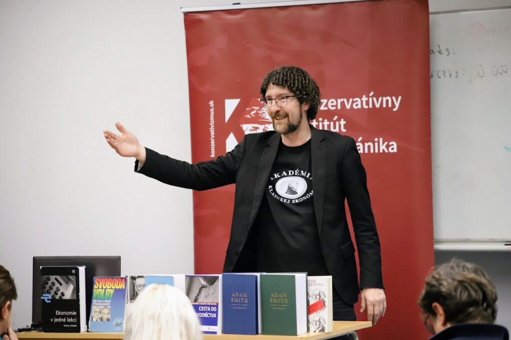 Spomeniem ešte dva širšie projekty KI, ktorých súčasťou je aj podpora ekonomického myslenia: súťaž „Študentská esej“, ktorá bola v minulom roku vyhlásená na tému Ako zatriasť Slovenskom a dostať ho na cestu prosperity, a projekt Búranie mýtov o socializme a sociálnom štáte. A nakoniec, aj prostredníctvom niektorých štúdií a publikácií sa zameriavame na ekonomické myslenie. Takými sú napríklad online zborník Odkaz Adama Smitha: Pohľady z Česka a Slovenska (2024), kniha Petra Boettkeho F. A. Hayek: Mysliteľ pre každé storočie (2020) a bude aj pripravovaný grafický román od Eamonna Butlera o Smithovej knihe Bohatstvo národov.